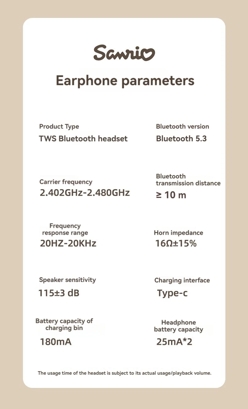 Sanrio TWS Earbuds C01 Hello Kitty Wireless Earphones Bluetooth